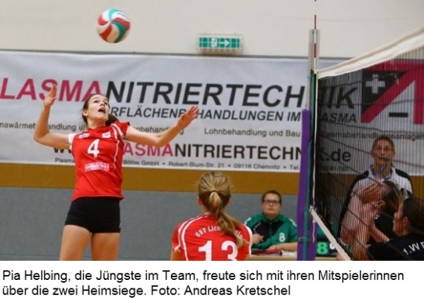 Das erste Spiel gegen den VV Freiberg gewannen die Spielerinnen mit 3:1 (25:21; 23:25; 25:21; 25:20). Trainerin Michaela Thees war mit der Leistung nicht ganz zufrieden. "Wir haben uns durch das Spiel geschleppt und nicht das gezeigt, was wir können."